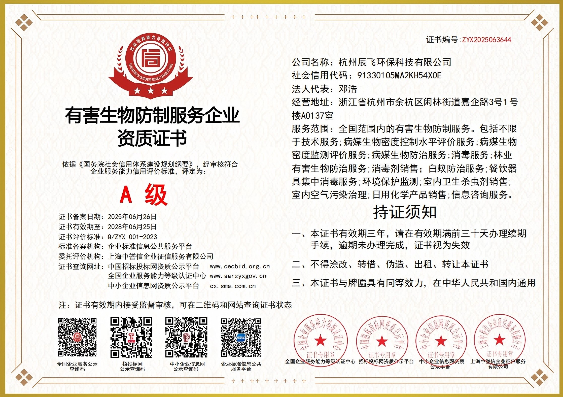 有害生物防制資質(zhì)A級(jí)(2025-2028)